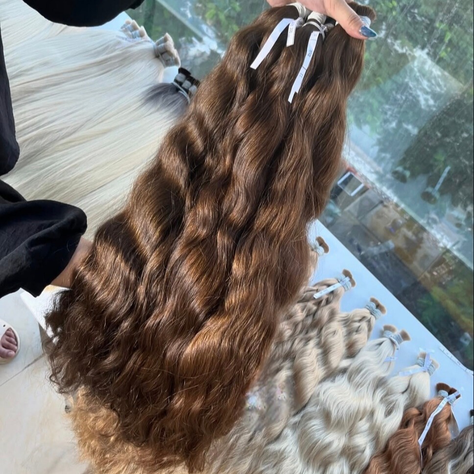Unsere Echthaar Tressen bestehen aus 100 % Echthaar mit natürlicher Struktur. Sie sind besonders flexibel und lassen sich vielseitig einsetzen, ob als Haarverlängerung, Haarverdichtung oder für kreative Styles.